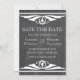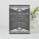 Quadro Deco Elegante e chic Salve o Anúncio de data com uma textura de quadro chalkboard de tendência e um par de bordas de espiral deco de arte marfim. Este adorável convite para a data é perfeito para anunciar o casamento temático da sua arte deco de 1920. Fácil de personalizar, simplesmente adicione seus detalhes de casamento. Clique em "Personalizar" para encontrar opções adicionais de personalização.