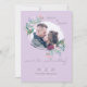 "O mesmo amor, casamento menor" caligrafia manuscrita. Salve a data - página de lavanda suave com quadro de foto de traçado do pincel de tinta - rodeada por buquê de flores silvestres rosa e lilás pálidas. "Está finalmente a acontecer", avise aos seus convidados que o casamento ainda está ligado - e mantenha a sua data especial aberta..