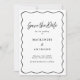 Salvar a data | Cartão Wavy Frame Wedding Toque o tom para sua celebração com este cartão branco e preto sem esforço Salve a Data, projetado para casais que adoram simplicidade com uma reviravolta. Um quadro rebatível e ondulado rodeia o script "Salvar a Data" escrito à mão, adicionando calor e personalidade a um pano de fundo branco limpo. Com sua elegante letra de serifa e detalhes de cidade e estado singularmente espaçados, este design combina o encanto retrô com a simplicidade moderna. O verso apresenta um fundo preto sólido — um acabamento ousado que mantém as coisas minimalistas e impressionantes. ✨ Esta opção Guardar o cartão Data é totalmente personalizável com os seus nomes, data do casamento, localização e detalhes pessoais. É ideal para casamentos opcionais casuais, modernos ou de gravata negra, projetados para impacto na moda e fácil legibilidade. Escolha entre vários tipos e tamanhos de papel para se adequar à sua visão e criar uma impressão duradoura.