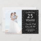 Convide a família e os amigos para uma próxima comemoração de aniversário com este marinho azul e prata personalizado de 2 fotos, 5 horas por dia, 7 dias por semana, para salvar o cartão de anúncio de data. (DICA DE IMAGEM: Uma maneira fácil de centralizar uma foto exatamente como você deseja é recortá-la antes de carregá-la no site do Zazzle.) Design apresenta duas imagens de sua escolha, caligrafia moderna de script, na moda vintage art deco inspirou tipografia, e pontos faux foil confetti prateados em um fundo azul marinho. Note que o texto é cinza e cor branca impressa, e não folha metálica. Este cartão de convite é configurado para um aniversário de casamento de 25, mas é simples de personalizar para qualquer ano ou tipo de evento. Se houver algum texto não desejado, simplesmente exclua-o.