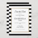 Com um histórico clássico preto e branco de faixa, este elegante aniversário de qualquer idade, exceto o cartão de data, apresenta uma elegante borda de folha de ouro falsa, preparando para salvar os detalhes de data definidos na tipografia quic. Projetado por Thisnotme©