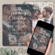 Anuncie as boas novas da sua festa pós fuga para casar com um exclusivo convite de "Nós nos amamos, Nós nos casamos, Nós fomos embora!" com foto personalizada, para salvar a data. As 2 fotos, código QR escaneável e toda a redação neste modelo de convite são fáceis de personalizar. (DICA DE COLOCAÇÃO DE IMAGEM: Uma maneira fácil de centralizar uma foto exatamente como você quer é cortá-la antes de fazer o upload para o site da Zazzle.) Personalize-o para qualquer tipo de celebração, como recepção de casamento, cerimônia de renovação de votos, casamento sequencial ou festa de 1º aniversário. Inclua a data do casamento, local, site ou quaisquer outros detalhes importantes de sua escolha. O design elegante preto e branco apresenta duas fotos do casal recém-casado, caligrafia moderna e tendência de escrita à mão e tipografia de máquina de escrever. Ao escanear o código QR com seus telefones, os convidados são enviados diretamente para o site do casamento, onde podem ver todos os detalhes importantes e se conectar com você online. Este cartão de nota de anúncio elegante é uma maneira sofisticada de informar amigos e familiares sobre a celebração do seu dia especial. Par