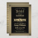 Você pode guardar um segredo? Convide a família e os amigos para uma elegante e excitante celebração de aniversário surpresa com papel preto personalizado e folha de ouro falso para salvar os convites de festas de data. Toda a redação desta modelo é simples de personalizar, incluindo a mensagem que diz "Shhh! É uma SURPRESA." O design apresenta uma fronteira striped moderna, uma típica tipografia vintage art deco e uma caligrafia na moda. Por favor, note que o ouro é impresso a cor verde e não a folha metálica. Este cartão pode ser personalizado para qualquer ano ou tipo de evento e é adequado para um homem ou uma mulher. Feliz Aniversário!