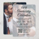 Anuncie as alegres notícias do seu aniversário de casamento com convites personalizados exclusivos de foto sobreposta para salvar a data. As 2 fotos, código QR que pode ser lido e toda a redação neste modelo de convite são simples de personalizar para o aniversário de casamento de qualquer ano. (DICA DE COLOCAÇÃO DE IMAGEM: Uma maneira fácil de centralizar uma foto exatamente como você quer é cortá-la antes de fazer o upload para o site da Zazzle.) Personalize-o para qualquer tipo de celebração de casamento, como uma cerimônia de renovação de votos, casamento subsequente, recepção de coquetel ou jantar. Você também pode incluir todos os detalhes importantes, como data do casamento, local e site. O design moderno em preto e branco apresenta 2 fotos de sua escolha, caligrafia elegante e tipografia de máquina de escrever estilosa. Ao ler o código QR com seus telefones, os convidados são enviados diretamente para o site do casamento, onde podem ver todos os detalhes importantes e se conectar com você online. Este cartão de nota de anúncio elegante é uma maneira sofisticada de informar amigos e familiares sobre a celebração do seu dia especial. Parabéns ao casal pela celebração de seu marco!