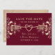 Burgundy romântico e floral de ouro guardam o cartão de data, perfeito para casamentos outono. Flores e caligrafia elegantes tornam isso ideal para casamentos de outubro ou outono.