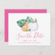 Anuncie seu chá de fraldas de menina com o meu tropical, salve os convites de data com as palavras Salvar nossa data em um estilo de tipografia tradicional que evoca o aspecto da letra da mão. Esta simples placa apresenta uma réplica da minha raposa vermelha de cor d'água original com folhas de monstera e abóbora branca com seus nomes, data e local do chá. Cartões invertem a cor roxa sólida complementar. Perfeito para setembro, outubro e novembro, chás de fraldas de meninas tropicais. Para ver mais ideias e anúncios de bebês de ação de graças de Victoria Grigaliunas, visite www.zazzle.com/dotellabelle.