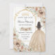 Personalize este elegante champanhe floral Quinceañera / Primeiro aniversário de 16 anos, salve a data fácil e rapidamente. Basta clicar no botão personalizar para editar os textos, alterar as fontes e as cores das fontes. Apresentando lindas flores de champanhe de aquarela, uma garota vestida com um lindo vestido de bola de champanhe e uma coroa de princesa de ouro. Perfeito para quinceanera, doce dezesseis, 18º aniversário, bola de debutante e muitas outras ocasiões! Itens correspondentes disponíveis no repositório. c) Paperie fina somerset