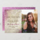 Celebre seu marco em estilo com esta glamourosa Quinceañera Salve o cartão com fotos da Data. Apresentando uma espantosa borboleta dourada sobre um cintilante fundo cor-de-rosa e brilho, esta design moderna combina elegância e encanto juvenil. Personalize com seu nome, data, localização e um belo retrato. O convite prévio perfeito para que amigos e familiares saibam marcar seus calendários para uma comemoração inesquecível do Sweet 15. Excelente para meninas que amam reluzentes, borboletas, e designs sofisticados com um toque pessoal.