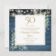Apresentando delicada cor d'água verde do jardim do país e luzes bonito de cordas em um fundo de painéis de madeira azul, esta rústica chic salvar o convite de aniversário de data pode ser personalizada com suas informações especiais de comemoração de 50 anos. Projetado por Thisnotme©