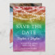 Guarde o cartão para um casamento de gay com um fundo de ombre arco-íris e luzes de fada bonito. Adicione seus nomes em um roteiro encantador e uma foto atrás.