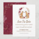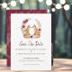 Celebre o seu amor com charme rústico e romance florestal! Este Anúncio de Salvação do Casamento Playful Fox apresenta um adorável casal de raposas cercado por belas flores de outono e folhagens de outono, tornando-o a escolha perfeita para um casamento campestre, celebração em celeiro rústico ou cerimônia inspirada na floresta.