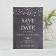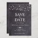 Reserve a Data! Anuncie o seu casamento a amigos e família com estes cartões salve a data rústicos de 'chalkboard' e 'strings light'. Personalizar com nomes, data do casamento, localização. Adicione qualquer outra informação na parte de trás. Essas únicas luzes de casamentos, exceto as cartas, farão uma impressão duradoura, seus hóspedes vão se certificar de salvar a data! COPYRIGHT © 2020 Judy Burrows, Black Dog Art - Todos Os Direitos Reservados. Luzes de Cordas Russas Chalkboard Casamento Salve a Data