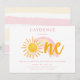 Celebrate a little ray of sunshine turning one with this sweet and minimal first birthday invitation. Featuring a soft watercolor rainbow and sunshine design in warm yellow and blush pink tones, this invitation is perfect for a cheerful, modern birthday celebration.