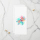 Red, flying, artistically drawn, in bright colors with textured iridescent, blue wings on white background, painted over with splashes of watercolor paint. Bright red dragonfly.