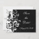 Coleção de casamento com redemoinho de alto contraste, preto e branco. Mostre seu estilo com este design arrojado e impressionante. Formas suaves e macias em branco sobre um fundo preto. Disponível como uma coleção completa de casamento, incluindo convites e lembranças.