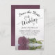 Este casamento Salve o cartão de data é romântico, elegante, elegante e bonito. Apresenta uma fotografia de um solteiro empoeirado longo, empoeirado ou rosa cor-de-rosa-mave, refletindo numa piscina de água com ondas e ondulações. O texto é uma caligrafia de script de rico sobre fundo branco. As costas apresentam um adorável padrão marmoreado. Maneira perfeita de deixar seus amigos e família saberem sobre seu próximo casamento.