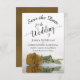 Este casamento Salve o cartão de data é romântico, elegante, elegante e bonito. Apresenta uma fotografia de um solteiro de ouro enfeitado ou de uma rosa amarela refletindo numa piscina de água com ondas e ondulações. O texto é uma caligrafia de script de rico sobre fundo branco. As costas apresentam um padrão profundo de ouro marmoreado. Maneira perfeita de deixar seus amigos e família saberem sobre seu próximo casamento.