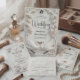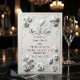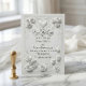Defina o tom para uma celebração formal de primavera com este design atemporal apresentando uma aparência floral esculpida. Um visual luxuoso para a noiva romântica clássica. Este design apresenta uma paleta monocromática sofisticada de branco suave e marfim quente. A obra de arte simula um relevo esculpido de alta qualidade, representando rosas exuberantes e botões de tulipa entrelaçados com elementos ornamentais e floreios curvos. Uma moldura retangular decorativa envolve o texto, que combina a caligrafia romântica com tipografia serifada tradicional para uma aparência formal. Esta é uma imagem impressa plana com efeito de Relevo Falso, não material real elevado.