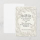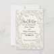 Defina o tom do seu casamento formal de primavera com este design sofisticado e monocromático, apresentando tipografia clássica e uma estética botânica atemporal. Este design apresenta uma paleta monocromática sofisticada dominada por tons de marfim e branco fosco, criando um fundo de alto contraste, porém suave, para o texto em cinza carvão. O ponto visual central é uma grinalda emoldurada de botões de tulipa e folhas, renderizada com uma técnica de escultura digital que imita a aparência do relevo em papel tradicional. A tipografia combina um roteiro de caligrafia romântica para os nomes com uma fonte serifada formal para os detalhes. Esta é uma imagem impressa plana com um efeito de relevo 3D falso impresso, não material realçado ou papel pressionado.