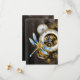 Marcações antigas com engrenagens de ouro e latão, decoradas com libélula mecânica sobre fundo castanho e listrado. Steampunk.