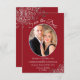 Estas belas cartas são uma forma excelente de deixar seus amigos e família saberem salvar a data do seu próximo casamento. Eles apresentam um elegante criminoso design vermelho colorido com sua foto em um quadro em forma oval cercado por colchões de colar de cinza prateada e cartazes de rico com seus nomes, data do casamento e local. O verso tem um gráfico bonito de "lápis nós in" com espaço para uma nota que pode incluir um site onde seus convidados podem obter mais informações.