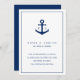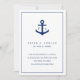 Espanhol náutico salva as datas que incluem uma âncora azul marinho com o seu monograma em ambos os lados de uma dentro de fronteira, sobre um fundo branco. A parte de trás é uma sombra correspondente de azul marinho. Esta simples design é perfeita para um casamento na praia no verão.