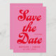 Casamento retrô salva a data com tipografia retrô moderna em cor rosa e vermelha.