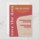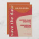 Abstract shapes retro vintage 70s style unique wedding save the date with bold typography in a trendy modern boho red, beige tan and orange terracotta chic color palette. +++++++ Please note that all the colors are changeable. ++++++++++++ The card is suitable for casual stylish contemporary weddings.