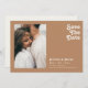 Esta praia retrô | foto marrom horizontal salvar a data é perfeita para o seu simples casamento de vintage, colorida e tropical boho verão. Sua única fonte boêmica do século do médio dá a essa design uma víbora hippie minimalista clássica. Suponha que você esteja procurando por uma design que apresente cores brilhantes e rústicas do oceano costeiro para o seu casamento criativo de praia de destino dos 70 anos. Nesse caso, este produto, e sua coleção de casamento coordenada, são o que você está procurando. Sinta-se livre para mudar a cor adicionar seu próprio trabalho de arte, gráficos ou fotos. Se tiver alguma dúvida sobre a design deste produto, por favor sinta-se à vontade para nos contactar!
