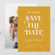 Retroceda salve o cartão de data com uma fonte achatada que diz "salve a data" com estrelas modernas de meio século. A cor de fundo é amarelo canário. Você pode adicionar uma foto atrás.