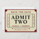 Tan marrom e escuro e vermelho burgundy retro cinema de cinema stub 5x7 salve o cartão de data. Personalize-o adicionando os nomes da noiva e do noivo e a data do aniversário de casamento. Mande todos os seus futuros convidados de casamento.