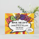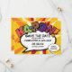 Personalize com seus nomes e detalhes para anunciar a data do seu evento especial. Tema de arte pop de revista em quadrinhos moderno, divertido design retrô, perfeito para casamentos, chá de noiva, chá de bebê, batizados, festas de noivado, celebrações de aniversário, formaturas, festa de aniversário e outros eventos especiais ao longo do ano! Um design legal, moderno e divertido que coloca o wham zap pow no seu dia. Criado por Thisisnotme©