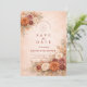 Inspired by lush autumn blooms and warm seasonal tones, this romantic wedding design features layered florals in shades of rust, blush, cream, and soft greenery. The painterly illustration creates a rich, elegant frame that feels timeless and inviting, perfect for celebrating love in the fall season.