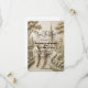 Evoke the grandeur of a historic European estate with this neo-classical illustration featuring a romantic couple in a formal cathedral garden setting.This design features a sophisticated trompe l'oeil visual effect that simulates the look of a hand-carved stone bas-relief sculpture. The monochrome palette utilizes soft ivory, cream, and warm beige tones to depict a bride and groom walking away down a winding cobblestone path, flanked by manicured hedges and tall cypress trees, leading toward a majestic Gothic cathedral. The typography hierarchy balances elegant black calligraphy for names with a vintage serif font for details, ensuring high readability against the faux-textured background. This is a flat printed image with a faux stone effect, not actual raised material.
