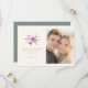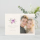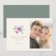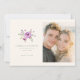 This wedding save the date features a split layout with an elegant floral illustration on the left, showcasing purple roses and green foliage in soft hues. The right side includes a photo placeholder for personalization, accompanied by classic serif typography that highlights customizable elements like names and dates. The design exudes a romantic and sophisticated theme, perfect for conveying warmth and celebration. Its clean composition and balanced spacing create an inviting atmosphere, making it ideal for couples looking to announce their upcoming nuptials with style.
