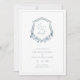 Romântica Foto Azul Floral Salva A Data. Este casamento romântico e na moda salve a data do anúncio mostra lindas flores azuis poeirentas pintadas manualmente em uma crista | coroa com 'salvar a data' num guião elegante. A parte traseira do convite inclui um padrão de capricho, mas pode ser facilmente apagada se preferir. Localize itens correspondentes na Coleção de Crest Monograma Azul Dusty.