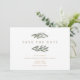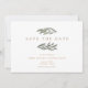 Cartões salve a data botânicos elegantes com lindas folhas de aquarela. Personalize com sua data de casamento, nomes, localização e detalhes, como site de casamento ou informações de convite, tudo em tipografia gráfica. A parte de trás das cartas continua a cor natural e macia da frente.