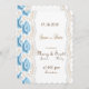 Rosas azuis com redemoinhos dourados enquadram este Save the Date ornamentado, evocando romance e celebração. Inspirado em motivos florais atemporais, captura a elegância com um toque de luxo. Um perfeito souvenir para anunciar o dia do seu casamento.
