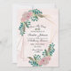 Um elegante design geométrico com rosas e fundo com cor d'água pintados à mão. Este convite faz parte de um convite de casamento completo.