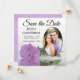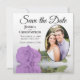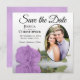 Estas belas cartões salve a data são a maneira perfeita de deixar seus amigos e família saberem sobre seu próximo casamento. Eles apresentam um design floral que é moderno e elegante com um rosa lilás púrpura, de solteiro longo, refletindo em uma piscina de água com ondas e ondulações com sua foto em forma oval. A legenda: Salvar a data com espaço para seus nomes, data e local em um plano de fundo branco clássico. O dorso é uma cor púrpura clara marmoreada.