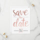 Esta opção salvar o convite de data pode ser personalizada com sua foto no verso e apresenta uma fonte de script de pincel de folha de rosa dourada falso.