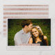 Elegantes detalhes em folha de ouro rosa, espaço branco e fontes modernas e nítidas tornam este simples cartão de salvar data com foto, ousado e lindo.