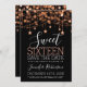 Rosa & Black Sweet 16 Birthday Sparkly String Luzes de anúncio "Save the Date" (Salve a data) com endereço da festa e detalhes de RSVP.