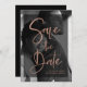 Esses cartões modernos e elegantes de "save the date" de casamento apresentam sua própria foto pessoal cobrindo completamente o fundo. Uma sobreposição preta transparente contém uma tipografia de roteiro da moda em falso dourado rosa, e há mais espaço para suas informações no verso do cartão. Um visual glamoroso e sofisticado que seus convidados vão adorar!