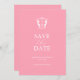 Anuncie o seu noivado com estes convites minimalistas de "save the date" para casamento. Eles apresentam uma mistura de tipografia clássica e cursiva em branco sobre um fundo rosa moderno com um brasão de monograma no topo. Use os campos do modelo para personalizar com seu nome e data de casamento. Até personalizar as cores para se adequar ao tema do casamento desejado. O verso apresenta um código QR personalizado. Basta adicionar o site do seu casamento no campo do modelo e ele será atualizado. Escolha entre uma variedade de cartões de qualidade. Misture e combine esta papelaria com muitos dos meus desenhos para criar o seu tema de casamento personalizado. Um design sofisticado e moderno para casamentos sustentáveis e anúncios de noivado. Para ver o conjunto de papelaria de casamento correspondente, visite www.zazzle.com/dotellabelle