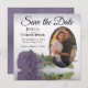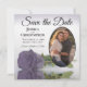 Estas belas cartões salve a data são a maneira perfeita de deixar seus amigos e família saberem sobre seu próximo casamento. Eles apresentam um design elegante com um solteiro roxo empoeirado ou rosa de cor lavanda, longo, refletindo em uma piscina de água com ondas e ondulações com sua foto em forma oval. A legenda: Salvar a data com espaço para seus nomes, data e local. A parte de trás é uma cinza roxa marmoreada.