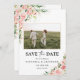 Rosa Rosa Rosa Esbranquiçada Salve A Data Com Placa Plana De Fotografia. Este na moda e elegante salve a data do convite apresenta uma linda cor d'água pintada manualmente Blush Pink Rose. Localize itens correspondentes na Coleção Dourada Rosa Rosa Rosa com Cor-de-Lobra Lente-d-Água.