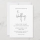 Casamento elegante salve a data com um simples design com "o casamento de" em um roteiro manuscrito moderno e seus detalhes de eventos em fontes clássicas de serifa.