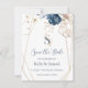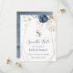 Elegantes rosas azuis e douradas em aquarela, convite de Save the date de casamento em forma geométrica. Deixe que seus amigos e familiares saibam que você receberá com prazer os presentes no seu dia especial.