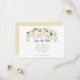 Rosas de cor aquosa branca e creme com folhas douradas e verdes e uma sugestão de Cartões salve a data dourados. Fácil de personalizar com suas próprias informações.